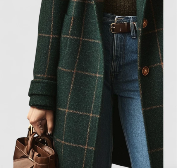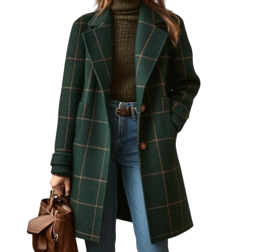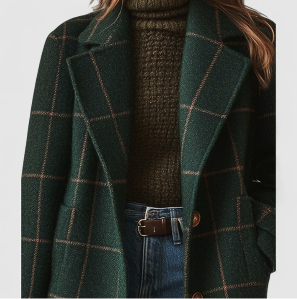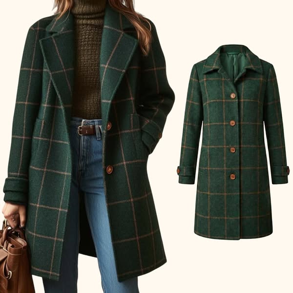 Seu corte com padrão xadrez verde-escuro adiciona um charme atemporal a qualquer look.